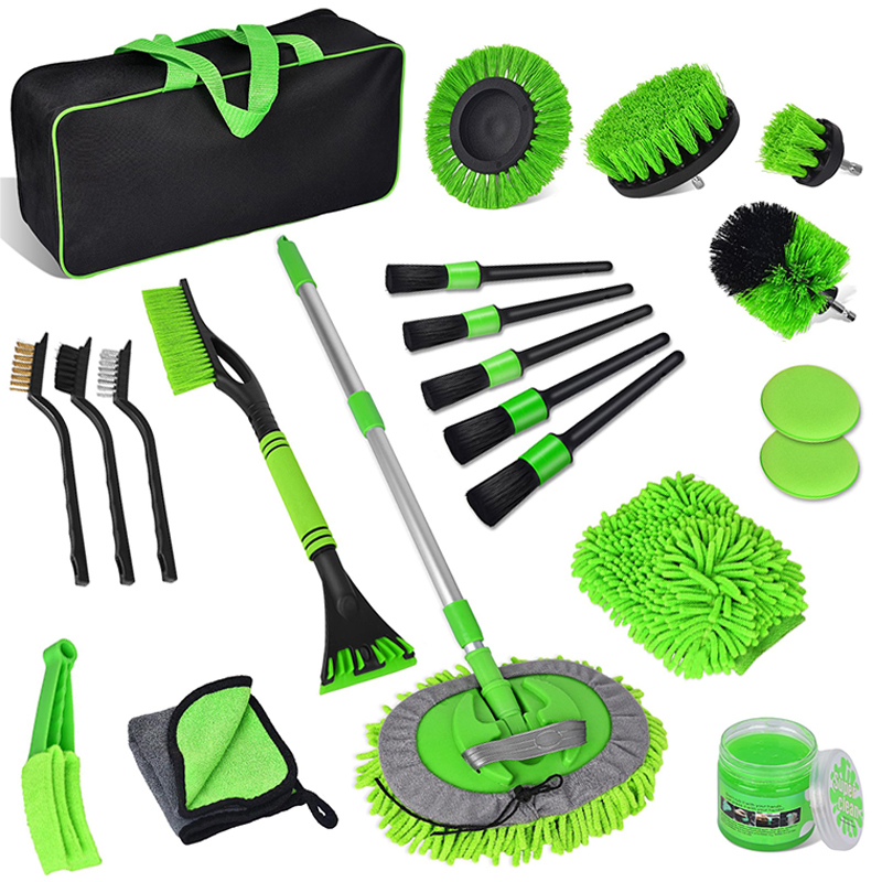 Absolutely. The kit is designed for full vehicle cleaning, including the body, wheels, windows, dashboard, and upholstery.