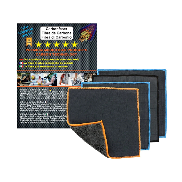 Carbon fiber increases electrostatic attraction, helping the towel capture fine dust, fingerprints, and greasy residues more effectively than standard microfiber.